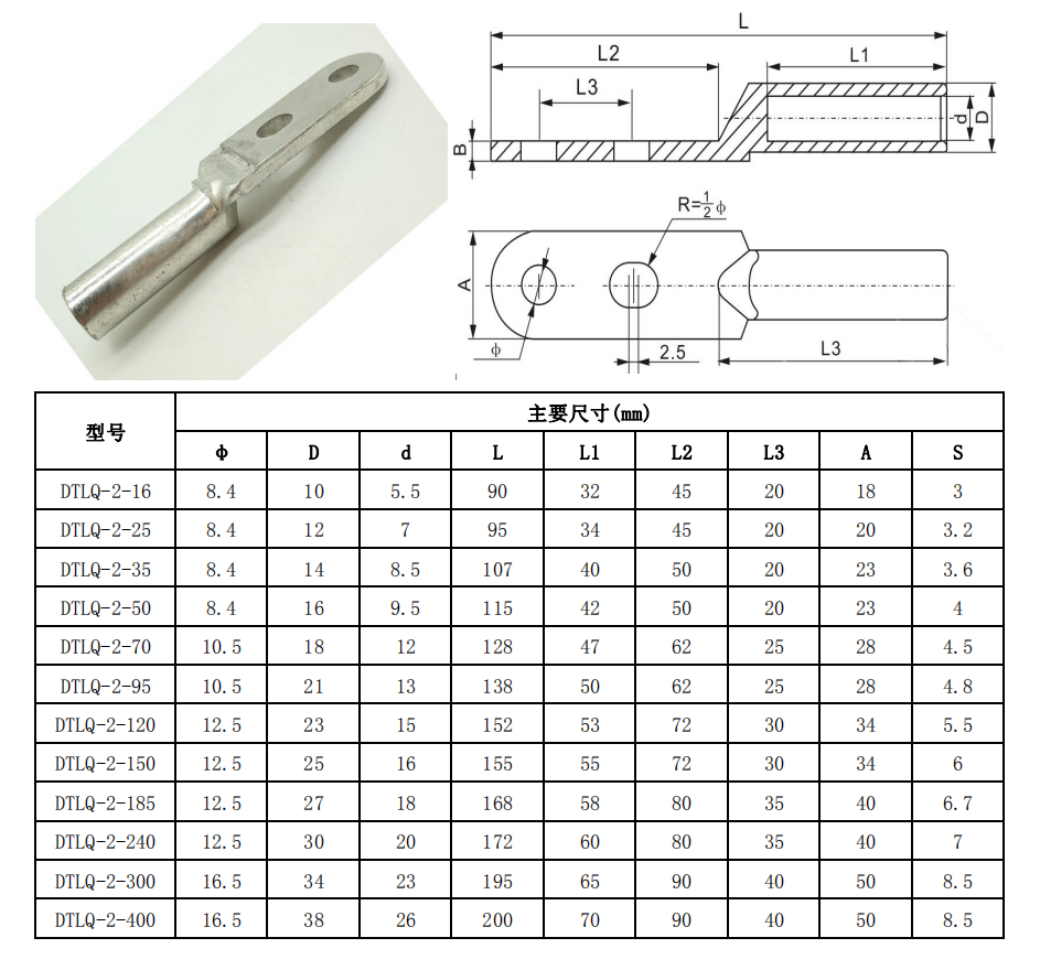 DTL2-Q釬焊雙孔銅鋁端子 |