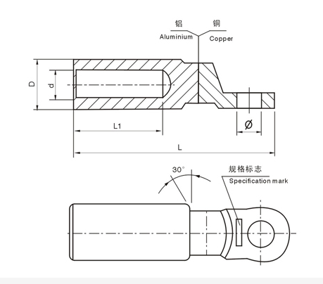 用途 : DTL系列銅鋁接線端子適用于配電裝置中各種圓型,半圓扇型鋁線,電力電纜與電氣設(shè)備銅端的過(guò)渡連接。使用鋁材為L(zhǎng)3,銅材為T(mén)2。產(chǎn)品采用磨擦焊工藝制造,具有焊縫強(qiáng)度高,通電性能好,抗電化腐蝕,使用壽命長(zhǎng)等等特點(diǎn)。