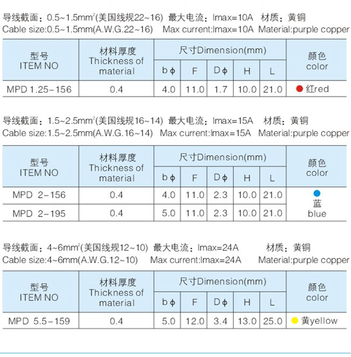 MPD子彈型公預絕緣端頭 Home您現在的位置:網站首頁 >> 產品中心 >> 冷壓端子